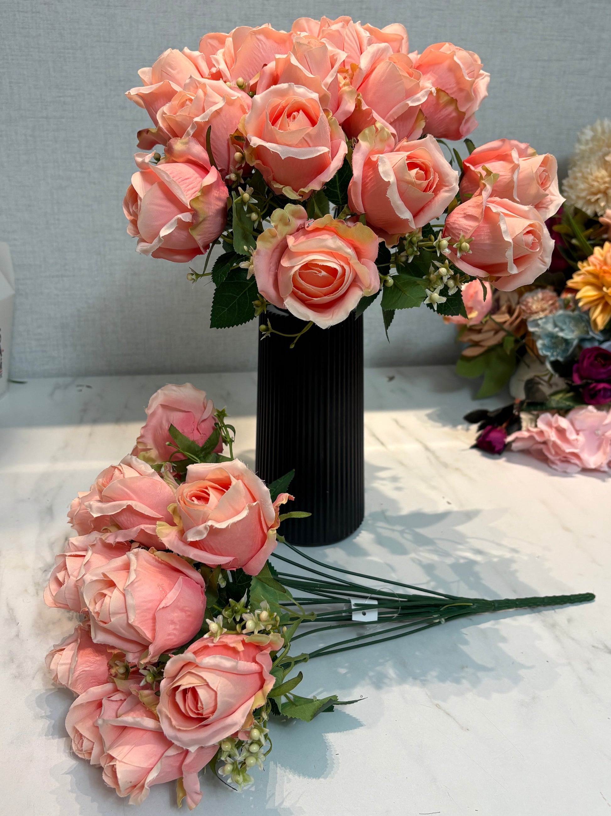 18 Kafalı Pudra Pembe Yapay Gül Demeti – Vazolusuz Dekoratif Çiçek