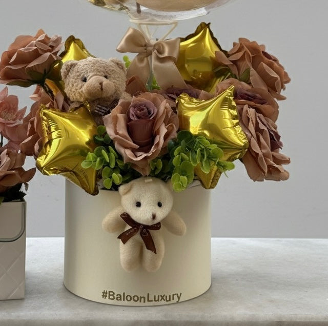 • Şeffaf balonun içinde 5 adet şeftali ve pastel tonlarda mini balon