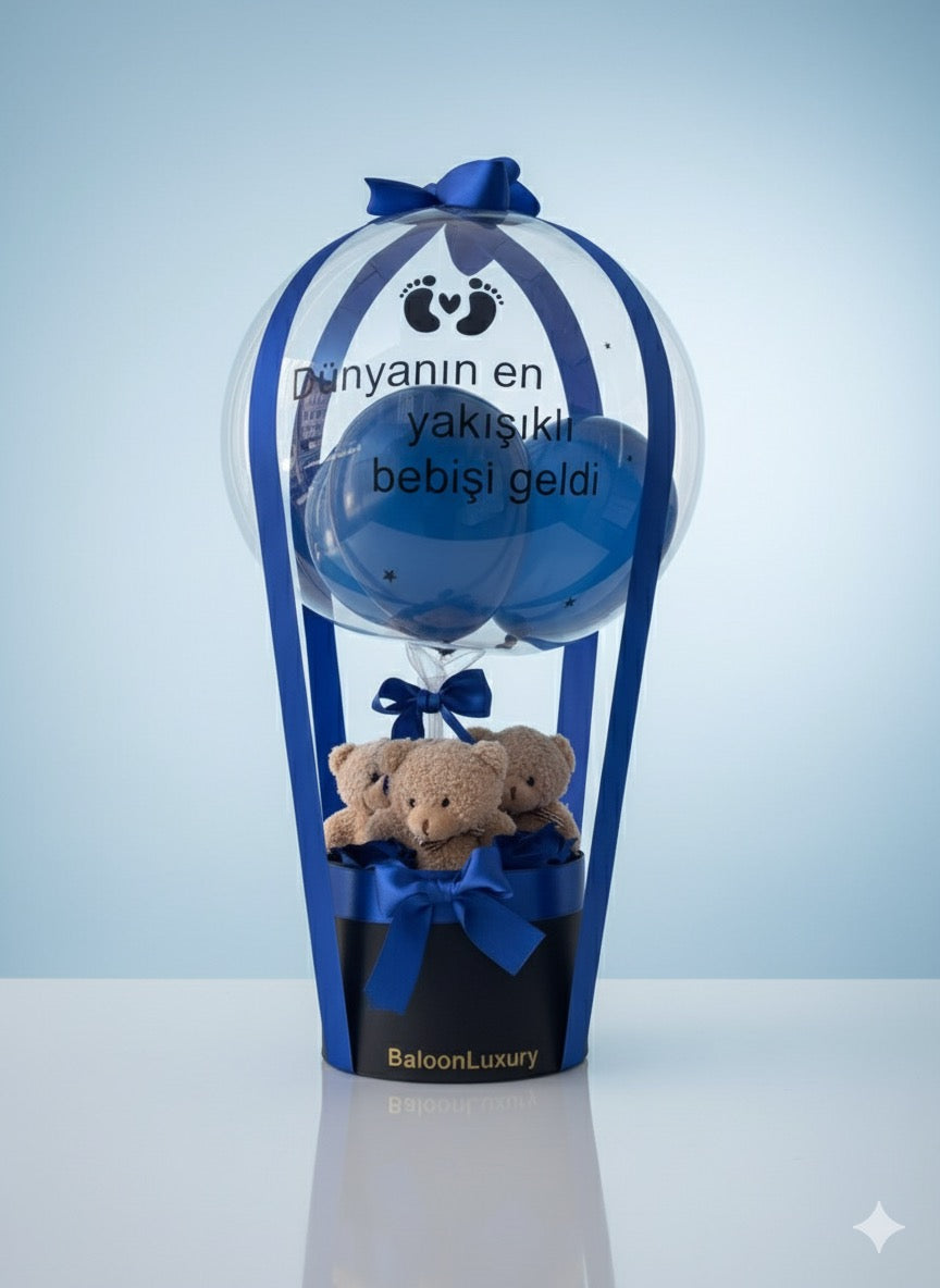 ÜRÜN İÇERİĞİ 3 ADET PELUŞ AYICIK3 ADET LACİVERT KADİFE GÜLKİŞİSELLEŞTİRİLMİŞ BALON NOTU