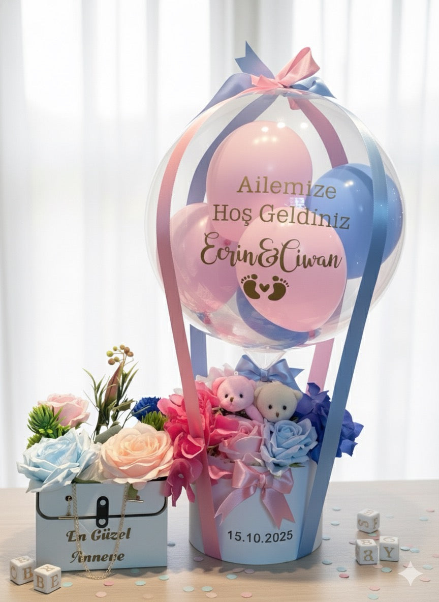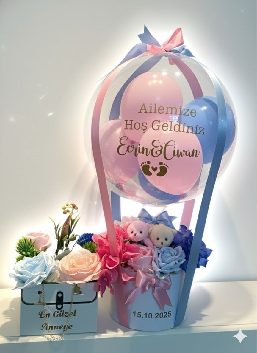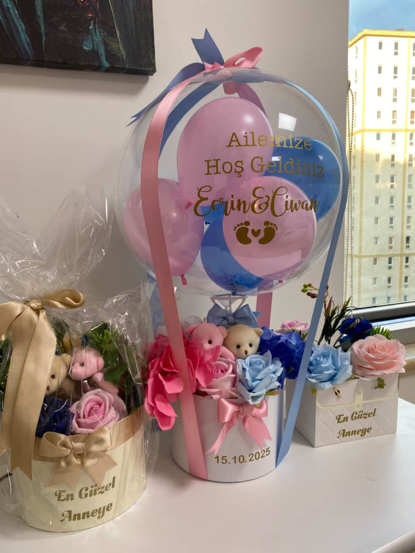 El yapımı çiçekler, peluş oyuncaklar ve kişiselleştirilebilir balon tasarımıyla unutulmaz bir karşılama anısı yaratır.