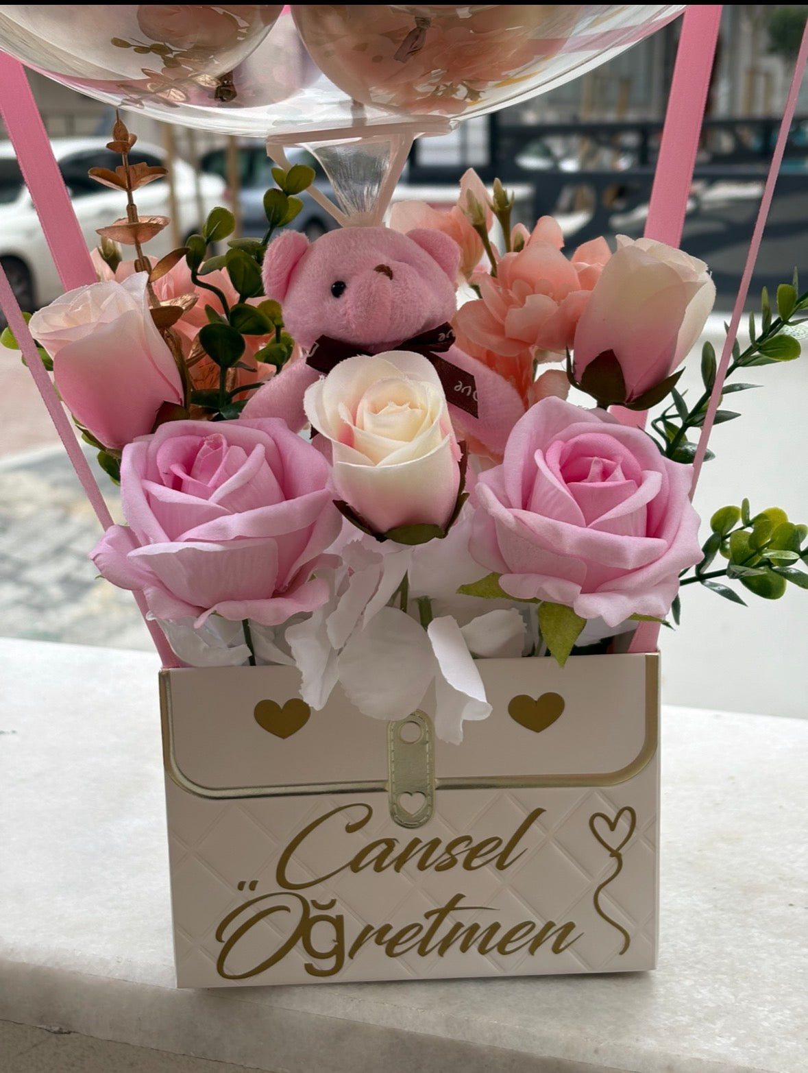 Öğretmenler Günü Balonlu Çiçek Kutusu – Kişiye Özel Anlamlı Hediye