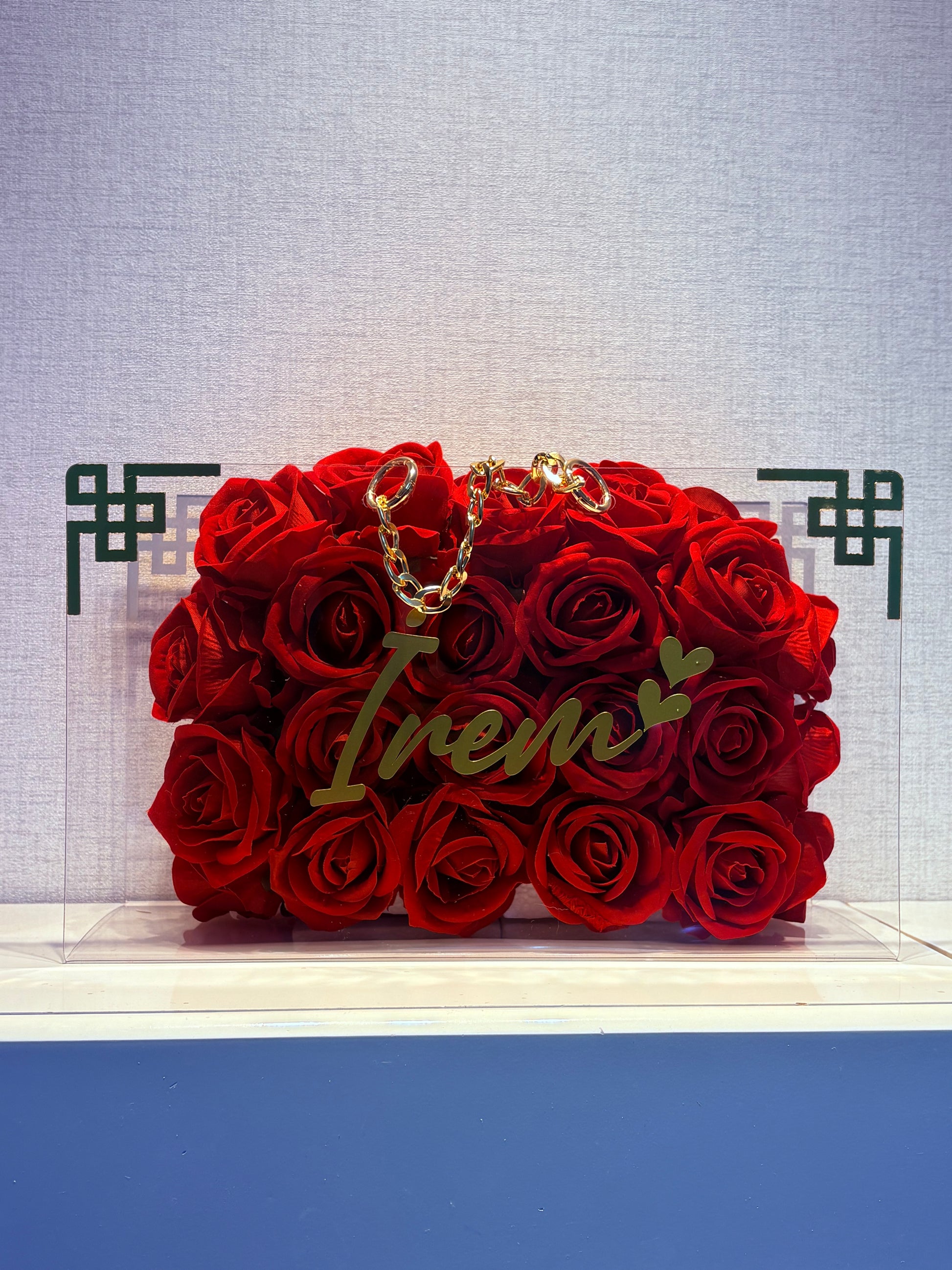 34x20 cm ölçülerindeki şeffaf lüks çanta içerisinde yer alan güller, uzun süre formunu ve canlı rengini korur. Ürün üzerine isteğe özel isim yazılabilir. Bu sayede tamamen kişiye özel, unutulmaz bir hediye haline gelir.